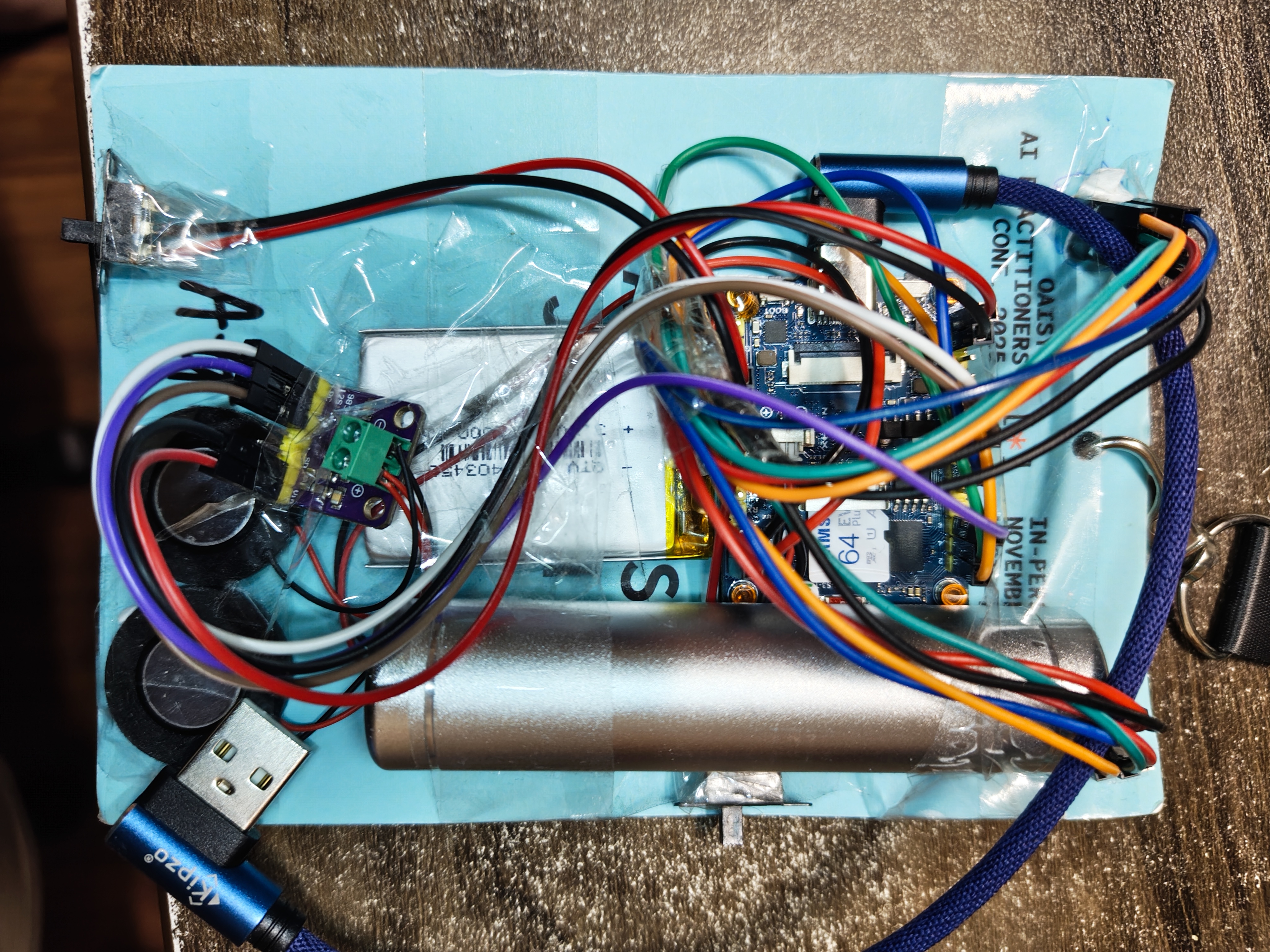 The badge works! It detects the wake word, extracts embeddings, somewhat matches the intent, runs the fine-tuned LLM, and finally speaks the response. All on a battery-powered device hanging from a lanyard.